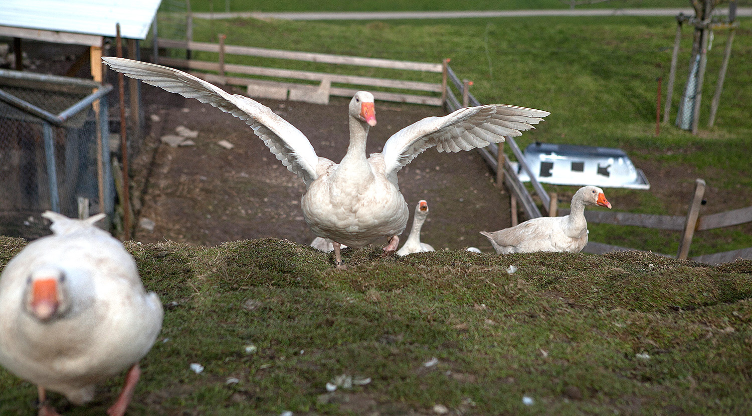 Der Archehof Rüegg befindet sich oberhalb von Ermenswil, direkt am Wanderweg gelegen und ist eingebettet in Wald und Wiesen. Im Hofbereich leben und weiden eine grosse Anzahl an unterschiedlichen Tieren, bei welchen 12 verschiedene ProSpecieRara Rassen zu finden sind. Wer bei uns in einem unserer Zirkuswagen übernachtet, befindet sich mitten unter ihnen, so kann es dann schon einmal sein, dass morgens schon ein Engadiner Schaf durch das Fenster schaut oder die Pommernente schnatternd Ihre Jungmannschaft zusammenhält. Die erste ProSpezieRara Rasse zog bereits schon 2001 bei uns auf dem Hof ein und löste dann auch die grosse Liebe und das Herzblut für diese tollen Rassen aus.
