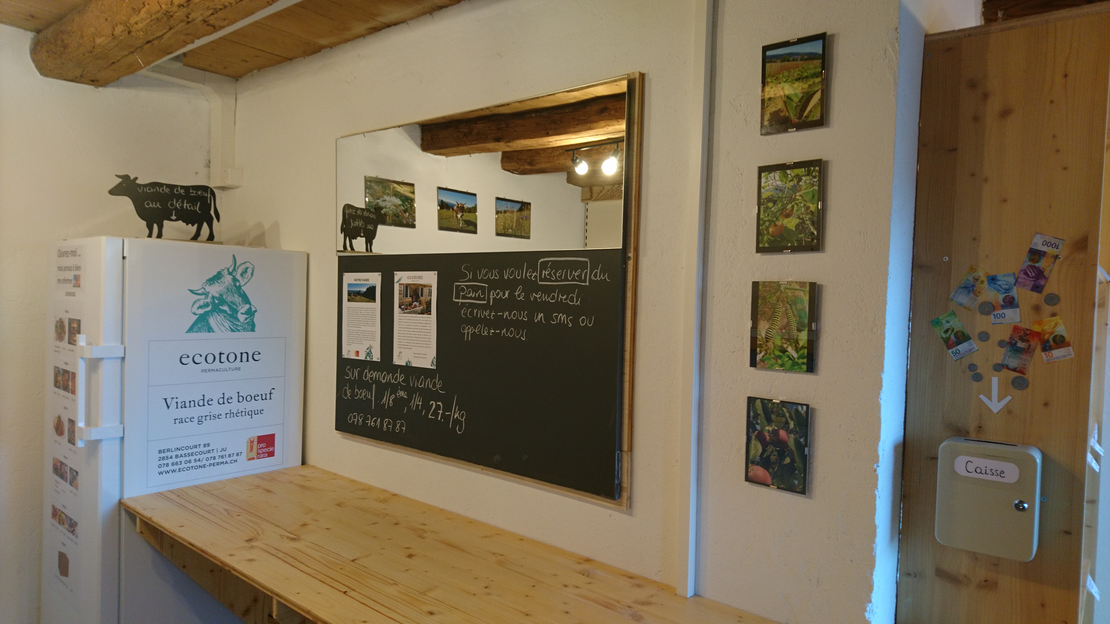 Ecotone permaculture, actuellement en conversion à l'agriculture biologique, est une ferme située à Berlincourt, petit village niché aux portes des gorges du Pichoux. Nous disons de notre ferme qu'elle est "expérimentale". En effet sa particularité est d'orienter sa production non seulement vers une production biologique, mais elle vise également et surtout une transition vers l’agroécologie et la permaculture. Nous proposons divers produits en vente directe à la ferme en particulier de la farine d'engrain (appelé également petit épeautre), d’épeautre, de sarrasin et de la viande de bœuf de vache grise rhétique.