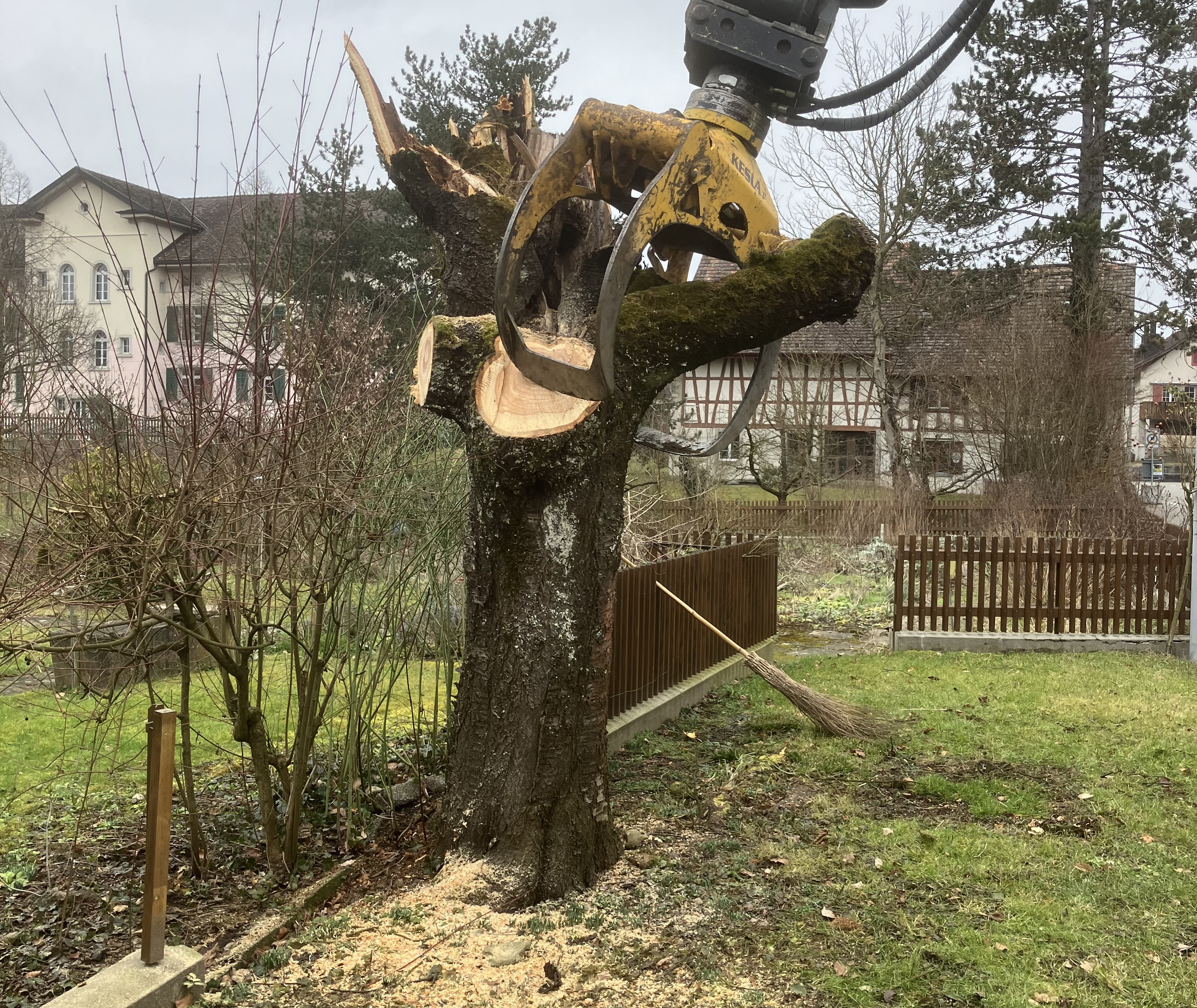 Neu angelegter Baumgarten mit: Aepfeln (alte Sorten), Speierlingen (5 Sorten), Elsbeeren (2 Sorten), Birnen, Walnuss, Quitte, Mispel, Kornelkirschen, etc