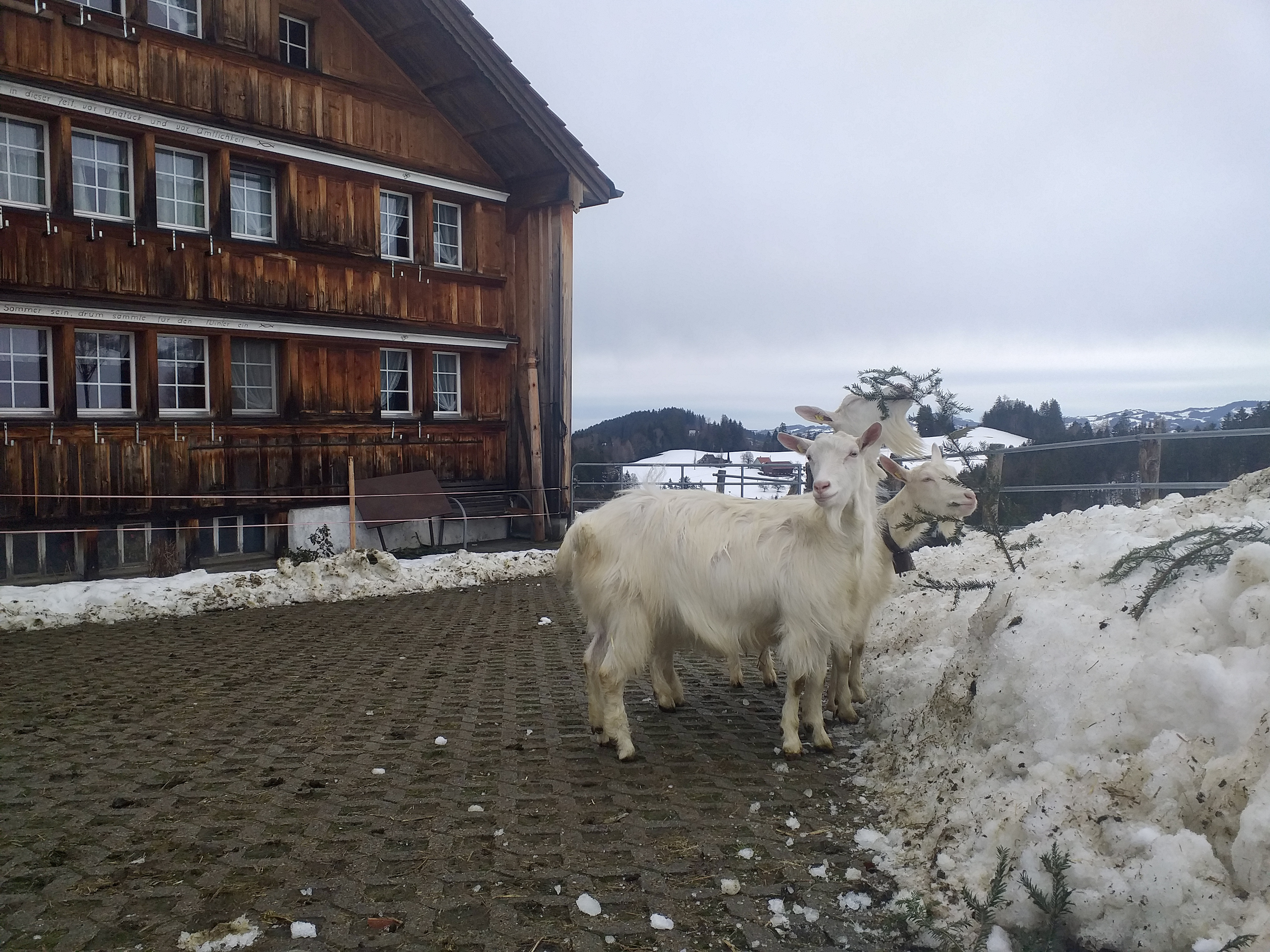 Unser Bio-Bergbetrieb liegt eingebettet in die sanfte Hügellandschaft des Appenzellerlands. Wir arbeiten im Rhythmus der Natur – mit Milchkühen, Appenzellerziegen, Hühnern, zwei Schweinen, Hund und Katz. Ein Hof, wie er im Appenzeller Bilderbuch steht.