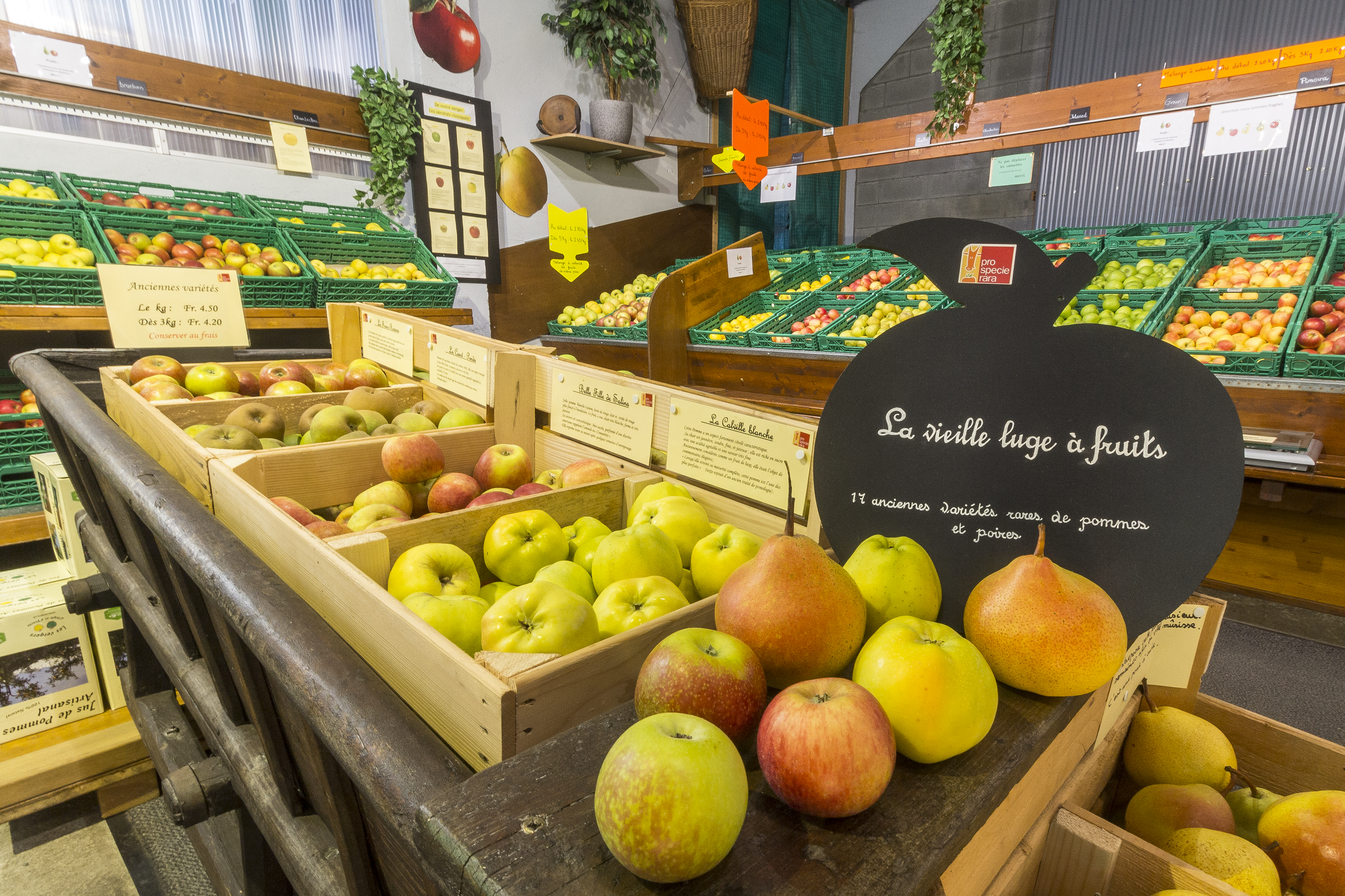 Au delà des anciennes variétés, nous cultivons actuellement plus de 50 variétés de fruits dans nos vergers, une partie de ceux -ci sont également disponibles en auto-cueillette durant la saison des récoltes.